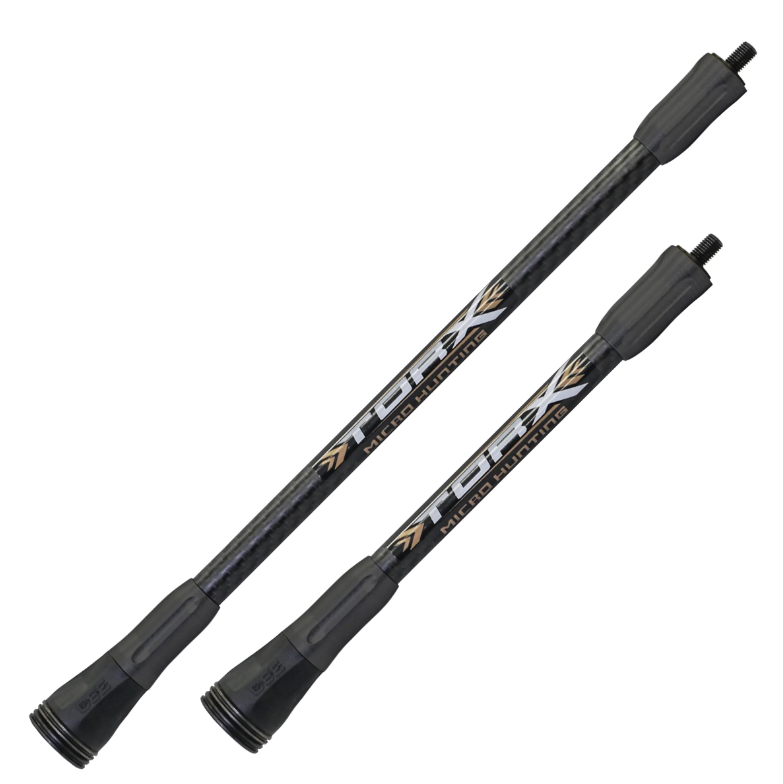 The CBE Torx Carbon Micro is available as a stand- alone stabilizer or as one of two kit options- 8 and 10 inch or 10 and 15 inch. The Stabilizer Kit features a tapered fit to ensure that the stabilizer doesn’t move once set, while the integrated front and back bar quick disconnect allows for easy disassembly for travel if needed.