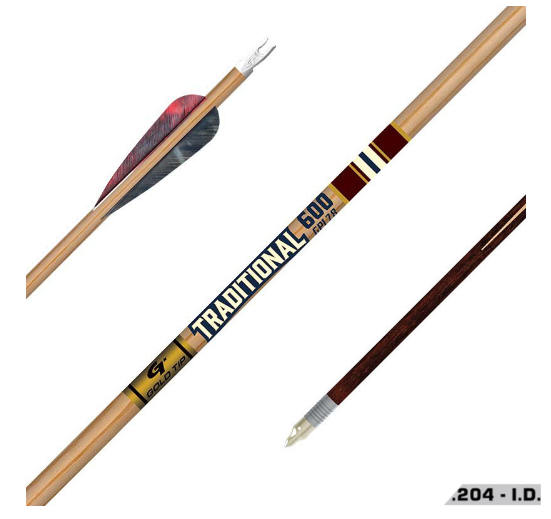 Gold Tip®’s Traditional Classic is built of a heavyweight, small diameter carbon shaft that comes equipped with stainless steel inserts. The strength and durability, coupled with the look of a custom footed-shaft makes it the perfect choice for any traditional archer that demands hard-hitting kinetic energy.
