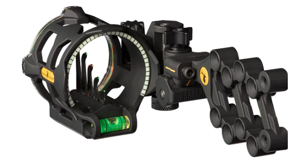 Adjusts pins automatically to the correct setting.The React® V5 features patented React Technology in its 5 vertically positioned fiber optic pins. This sight offers extreme accuracy up to 60 yards.