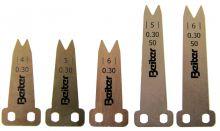 - The right low picture shows the different launcher models available: 4,5 or 6mm wide, 0,20-0,25-0,30-0,35mm thick, available in 2 lengths (long one +15mm only in combination with 20° tilting blocks).