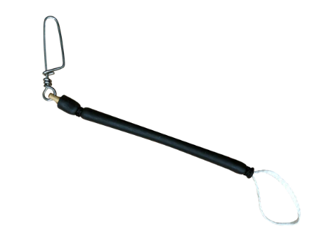 Bungee for speargun muzzles, includes a snap clip for attaching the shooting line.