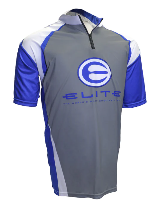 An Elite Team requires a jersey that fits the part. This quarter-zip collared jersey features a large grey panel with Elite blue highlights around the collar, shoulders, and sides. The large Elite logo on the front is sure to be a crowd-pleaser when you're standing on the shooting line—and hopefully, on the podium.