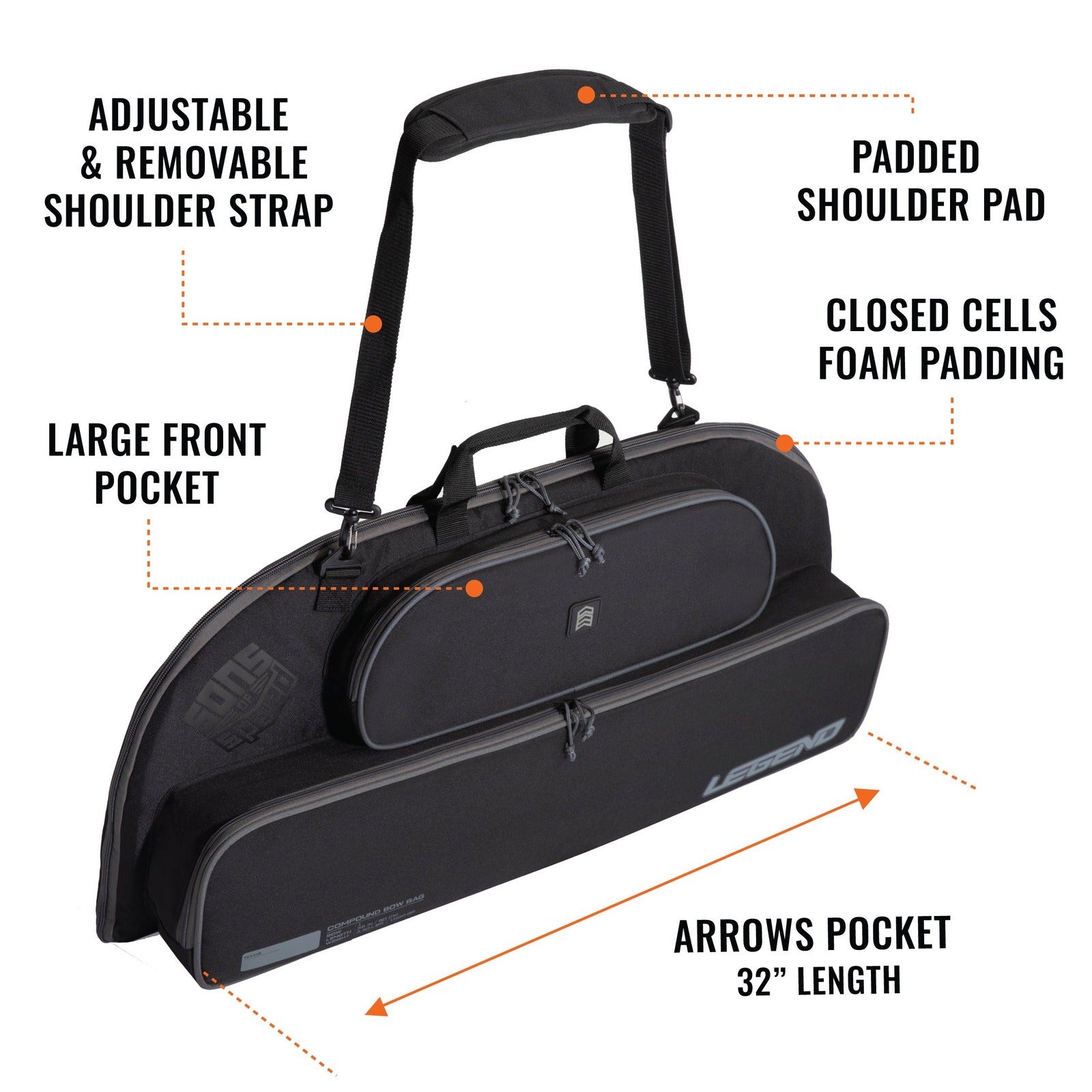 • Outer pockets provide storage for accessories away from the bow