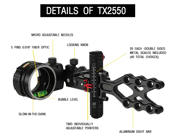 Topoint Micro Adjustable 5 pin sight TX2550