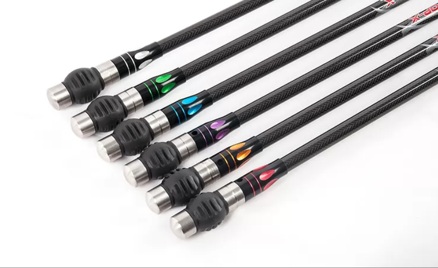 Topoint top-x carbon stabilizer available in: red, green, purple, silver and orange. Includes weights and dampener.