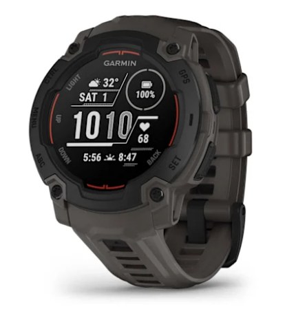 The Instinct E smartwatch is 10 ATM water-rated and engineered to MIL-STD-810 for thermal and shock resistance.